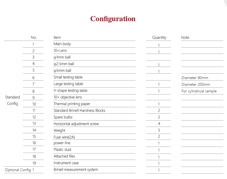 Brinell scale HBW2.5/6.25、HBW1/10、HBW2.5/15.625、HBW1/30、 HBW2.5/31.25、HBW2.5/62.5、HBW5/62.5