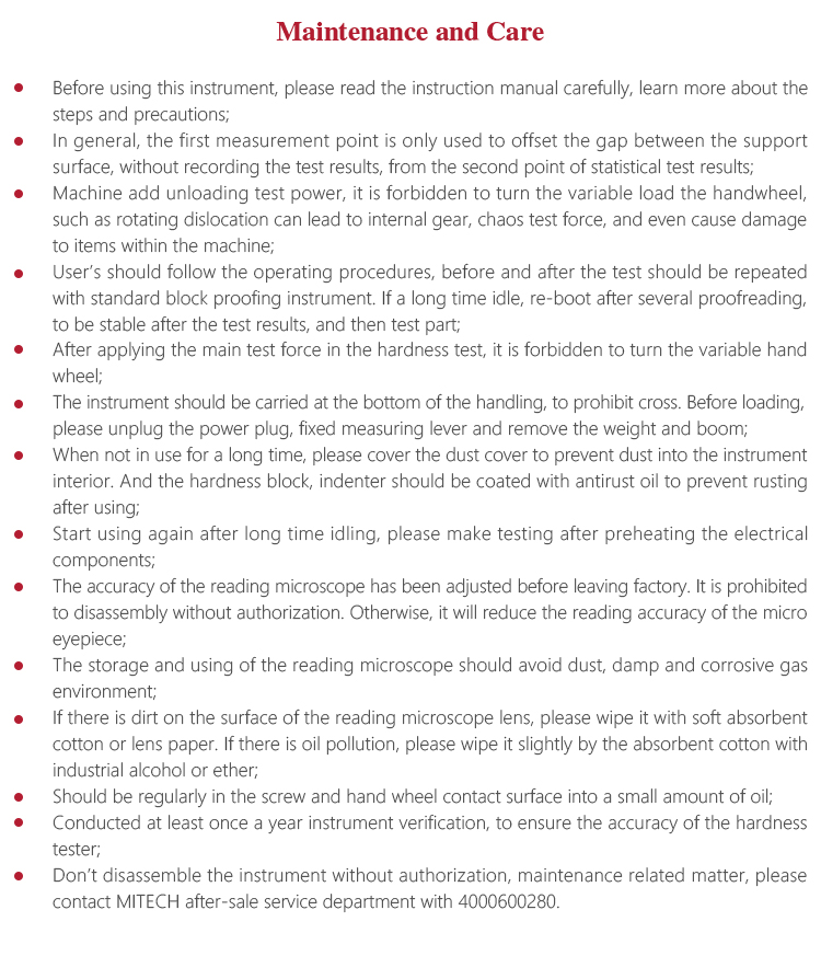the hardness block, indenter should be coated with antirust oil to prevent rusting after using.