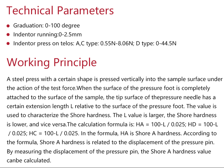 Product OverviewMITECH MLX-A、C、D Digital Shore Rubber Durometer is simple, compact and portable, the reading is intuitive, and it is easy to use. It can be measured by hand or placed on the supporting load frame. It is widely used in the hardness measurement of rubber and plastic.
