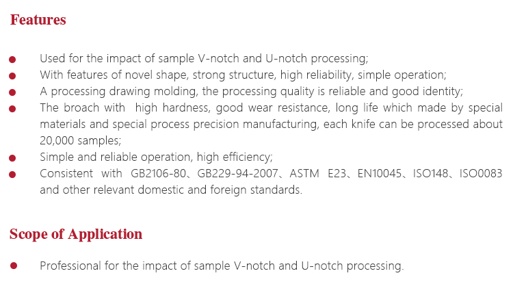 Function & applicationProfessional for the impact of sample V-notch and U-notch processing.