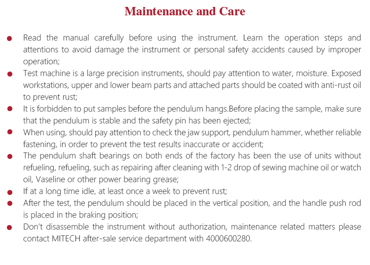 l After the test, the pendulum should be placed in the vertical position, and the handle push rod is placed in the braking