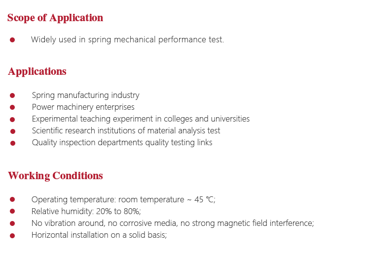 Instrument Featuresl Widely used in spring manufacturing, low-voltage electrical appliances, power machinery, institutions of higher learning and