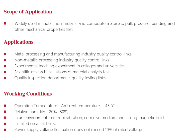 l Test machine is a large precision instruments, should pay attention to water, moisture. Exposed workstations, upper and lower beam parts and attached parts should be coated with anti-rust oil to prevent rust;