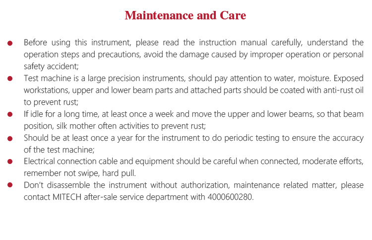 l Don’t disassemble the instrument without authorization, maintenance related matter, please contact MITECH after-sale