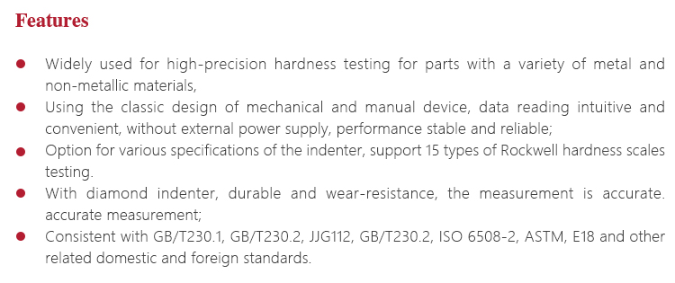 Instrument Featuresl Widely used for high-precision hardness testing for parts with a variety of metal and non-metallic materials,