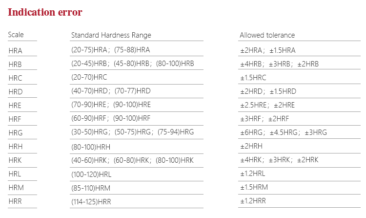 | Rockwell scale | HRA、HRB、HRC、HRD、HRE、HRF、HRG、HRH、HRK |