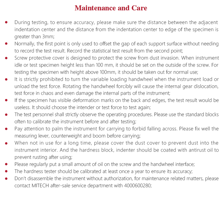 Instrument Maintenancel During testing, to ensure accuracy, please make sure the distance between the adjacent indentation center and the