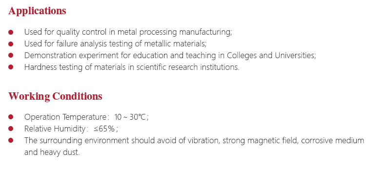 l Widely used for high-precision hardness testing for parts with a variety of metal and non-metallic materials;