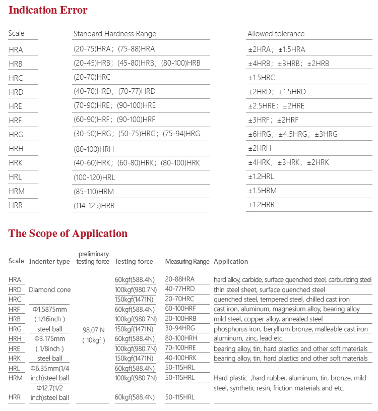 | Rockwell scale | HRA、HRB、HRC、HRD、HRE、HRF、HRG、HRH、HRK |