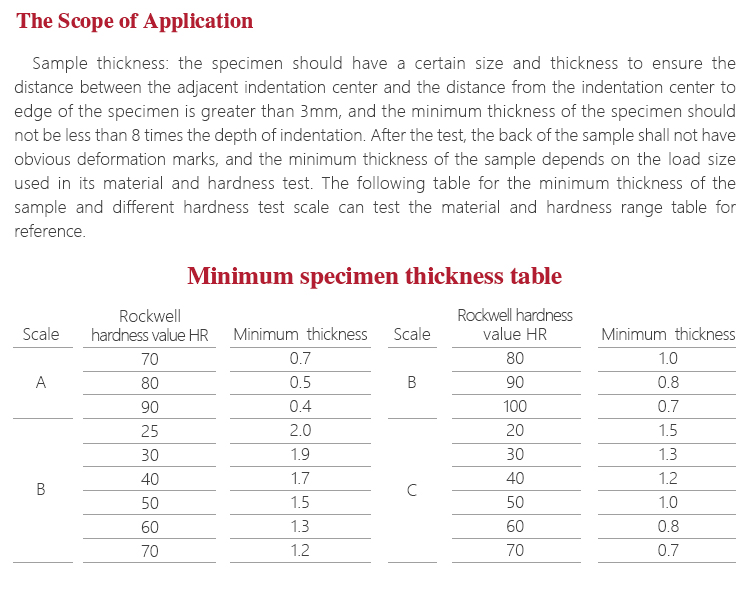 Measuring range HRA:20-88、HRB:20-100、HRC:20-70、HRD:40-77、 HRE:70-100、HRF:60-100、HRG:30-94、HRH:80-100、 HRK:40-100、HRL