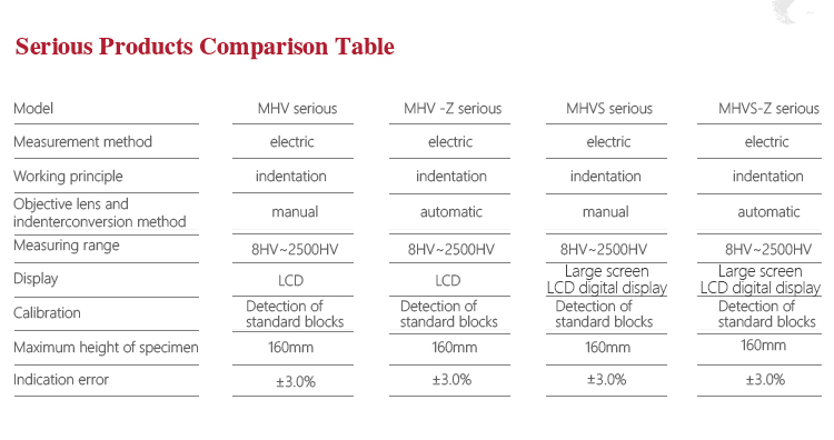 | Measurement range | 10HV2~2500HV30 |