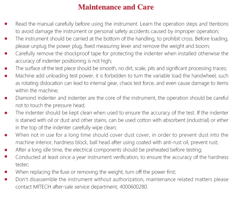 l The indenter should be kept clean when used to ensure the accuracy of the test. If the indenter is stained with oil or dust