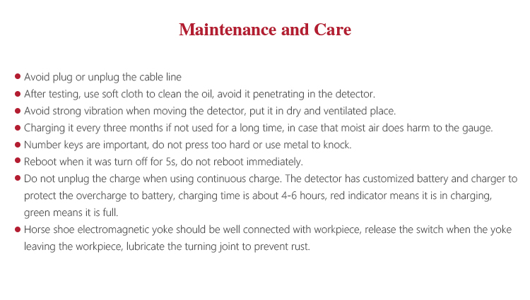 l Digital portable magnetic flaw detector is precision detector, please note the following,