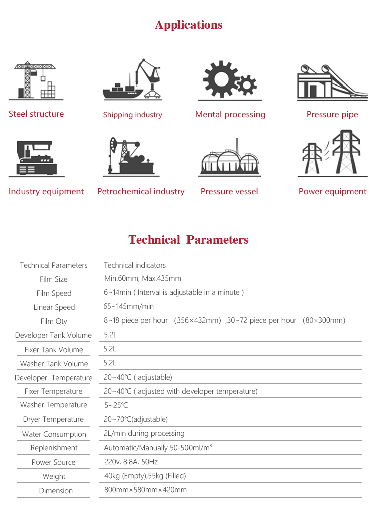 Developer and dryer temperature are adjustable, to ensure film dried and brightly and improve the work efficiency.