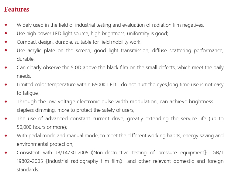 Instrument FeaturesWidely used in the field of industrial testing and evaluation of radiation film negatives;