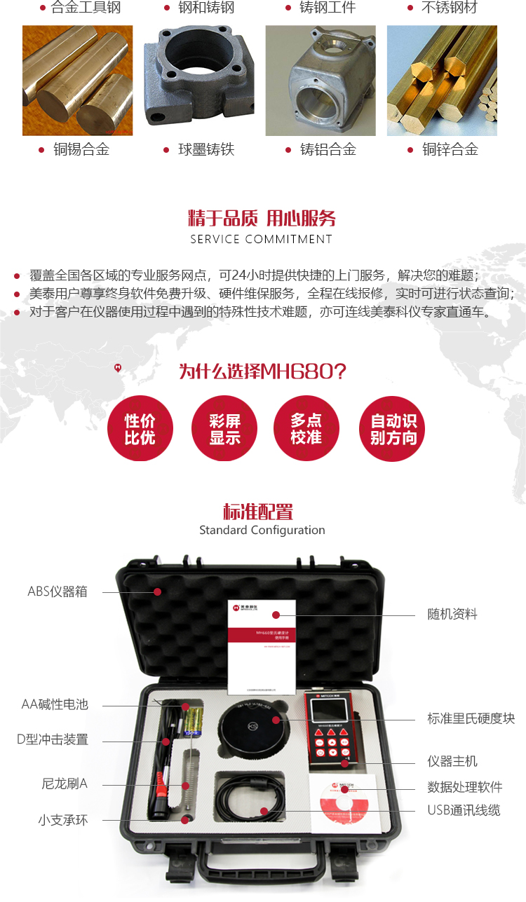| 測(cè)量材料 | ?鋼和鑄鋼、合金工具鋼、不銹鋼、灰鑄鐵、球墨鑄鐵、鑄鋁合金、銅鋅合金(黃銅)、銅錫合金(青銅)、純銅、鍛鋼; |
