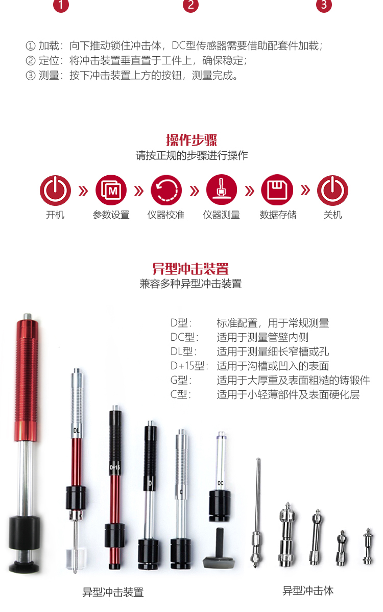 適配七種類(lèi)型的沖擊裝置;自動(dòng)識(shí)別沖擊裝置類(lèi)型,更換時(shí)無(wú)需重新校準(zhǔn);