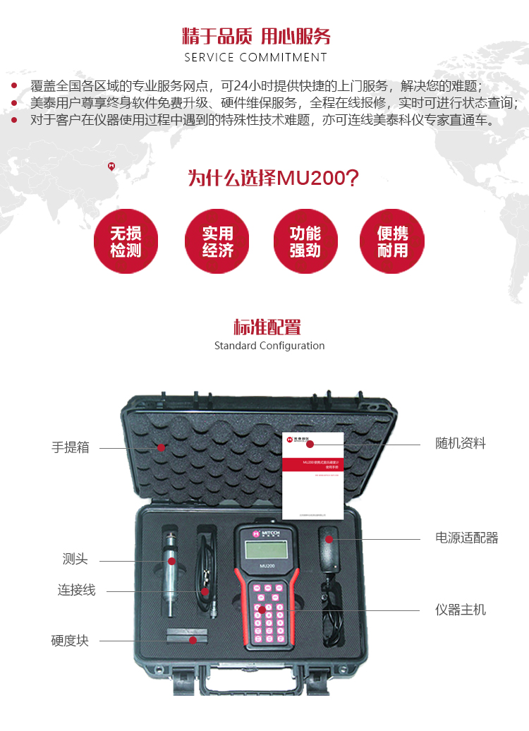 | 美泰MU200超聲波硬度計儀附有專用的隨機裝箱資料。包括產(chǎn)品合格證、保修卡、產(chǎn)品說明書、裝箱清單。隨機資料采用專用的銅版紙印制,說明書的圖文設計美觀、易懂、便于長久保存。注:美泰品牌系列產(chǎn)品的隨機資料均可登陸m.laixueer.cn下載電子版。 | |