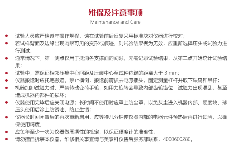 儀器的保養(yǎng)與維護(hù)?試驗(yàn)人員應(yīng)嚴(yán)格遵守操作規(guī)程,請?jiān)谠囼?yàn)前后反復(fù)采用標(biāo)準(zhǔn)塊對儀器進(jìn)行校對;