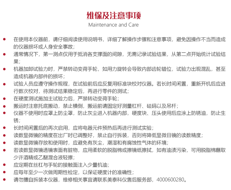 儀器的保養(yǎng)與維護(hù)美泰MHBS-62.5觸摸屏自動(dòng)轉(zhuǎn)塔數(shù)顯小負(fù)荷布氏硬度計(jì)屬精密檢測(cè)儀器,使用中應(yīng)特別注意如下事項(xiàng):