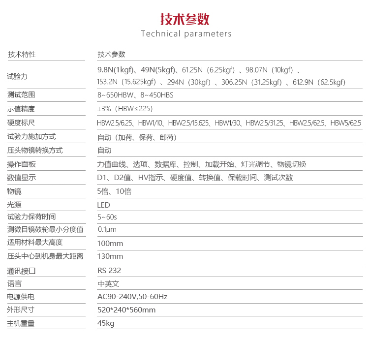 | 測(cè)試范圍 | 8~650HBW、8~450HBS |