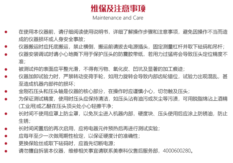 長時間不使用應(yīng)罩上防塵罩,以免灰塵進(jìn)入機(jī)器內(nèi)部,硬度塊、壓頭使用后應(yīng)涂上防銹油,防止生銹;