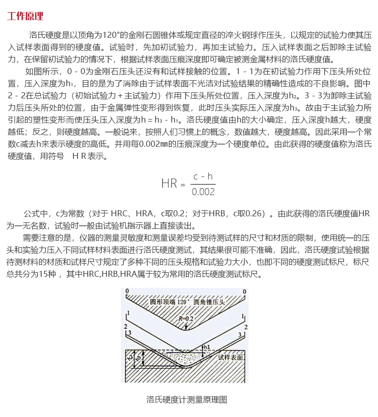 式中,c為常數(shù)(對于 HRC、HRA,c取0.2;對于HRB,c取0.26)。由此獲得的洛氏硬度值HR為一無名數(shù),試驗時一般由試驗機(jī)指示器上直接讀出。
