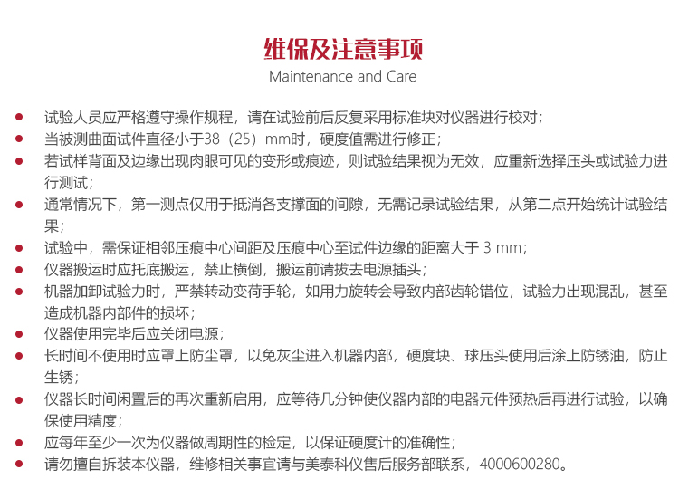 儀器的保養(yǎng)與維護(hù)? 試驗人員應(yīng)嚴(yán)格遵守操作規(guī)程,請在試驗前后反復(fù)采用標(biāo)準(zhǔn)塊對儀器進(jìn)行校對;