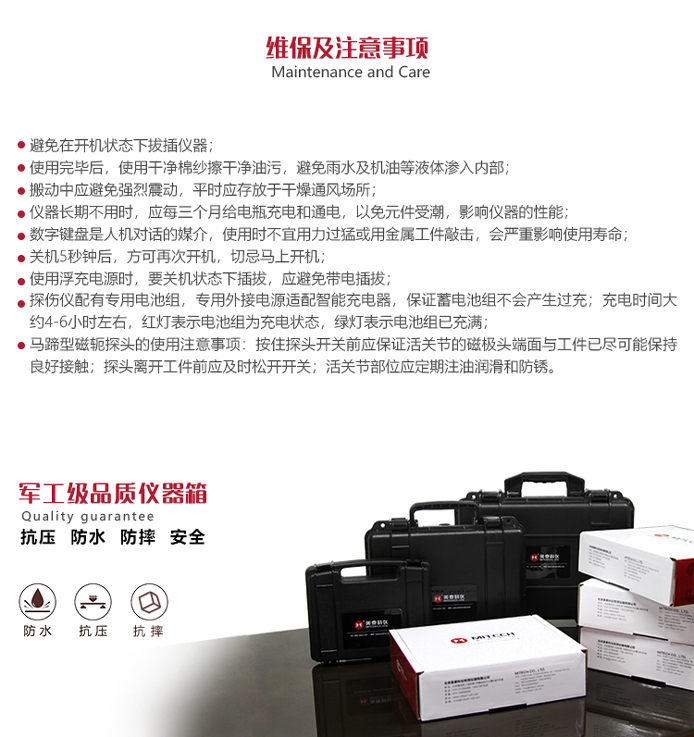 儀器的保養(yǎng)與維護數(shù)字便攜式磁粉探傷儀屬于精密檢測儀器,使用中要注意下列事項:
