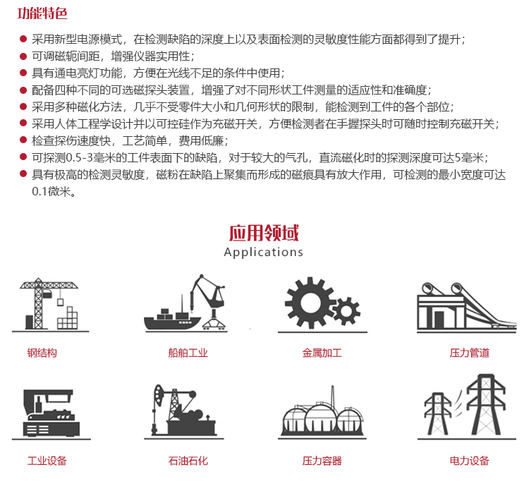 ?應(yīng)用新型電源模式,使本產(chǎn)品不論在檢測(cè)缺陷的深度上還是在表面檢測(cè)的靈敏度性能方面都得到了提升;