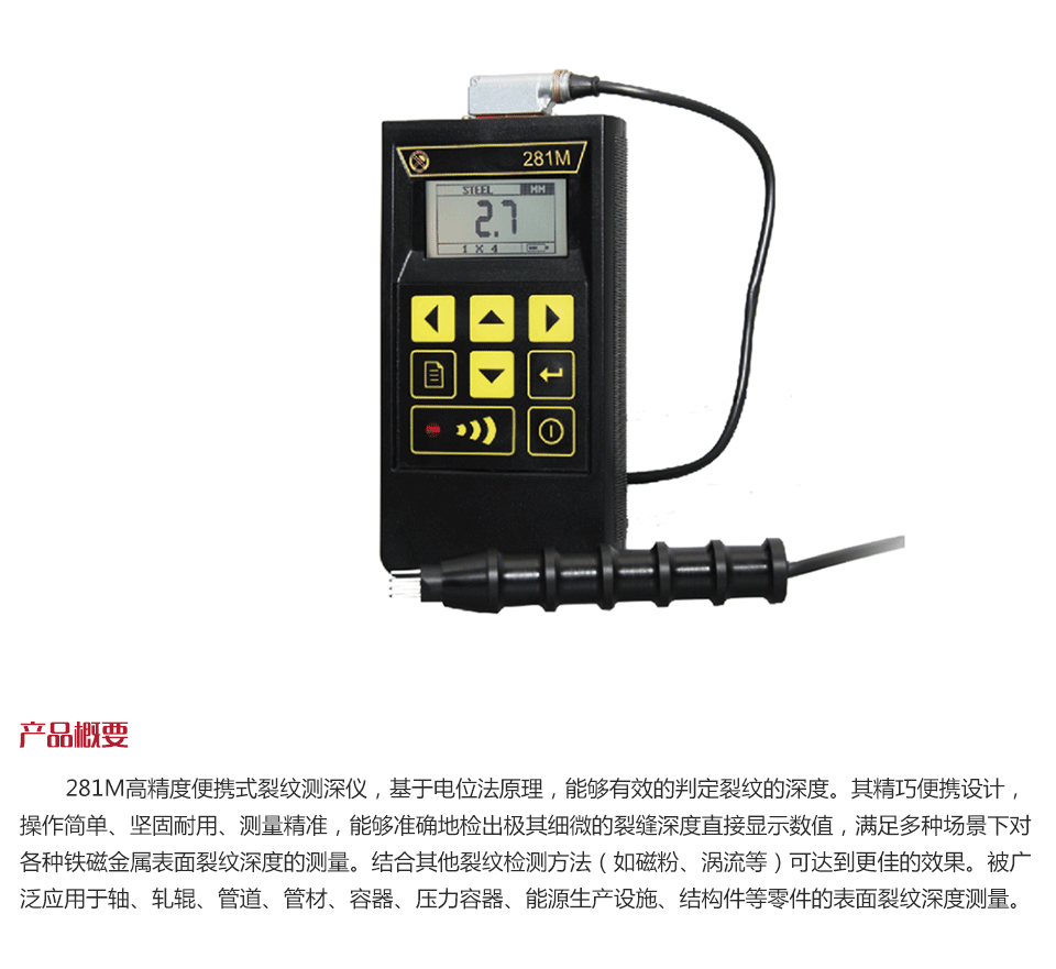 281M高精度便攜式裂紋測深儀,基于電位法原理,能夠有效的判定裂紋的深度。其精巧便攜設(shè)計,操作簡單、堅固耐用、測量精