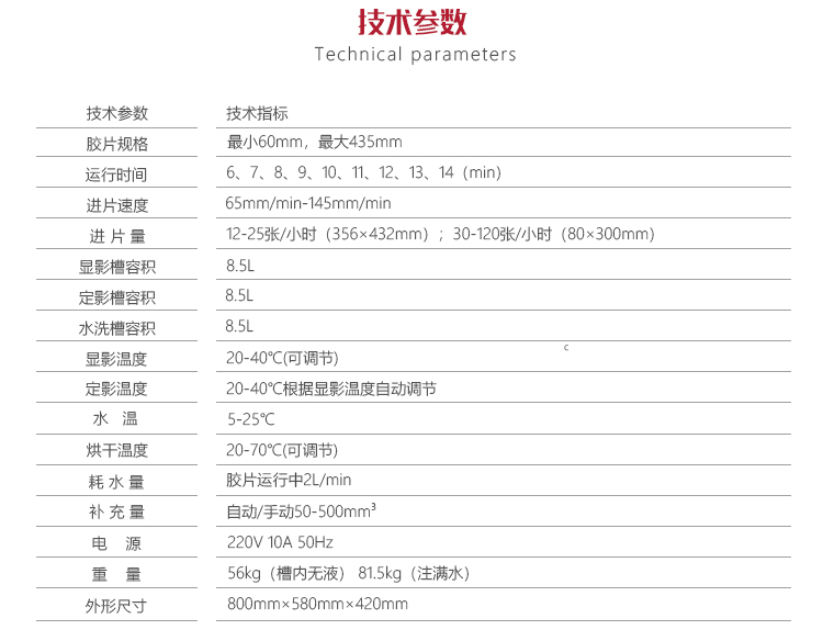 | 洗 片 量 | 12~25張/小時(356×432mm);30~120張/小時(80×300mm) |