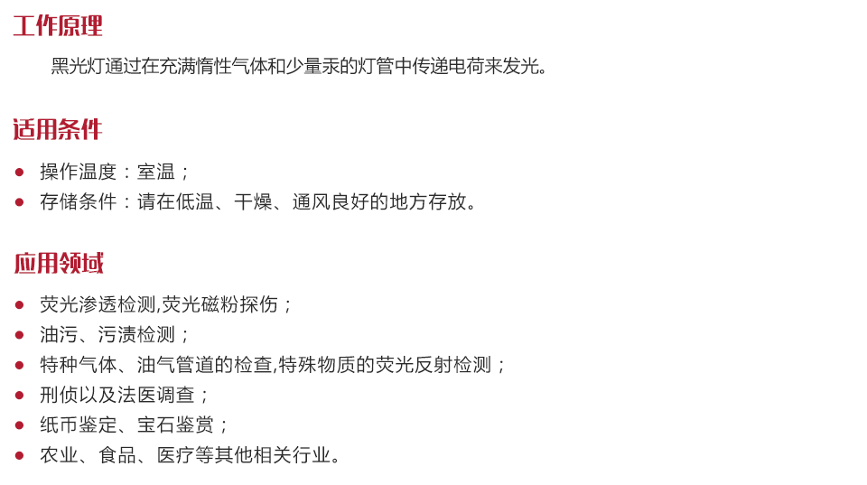 | 黑光波長 | 室溫25℃ UVA(360-370nm) |