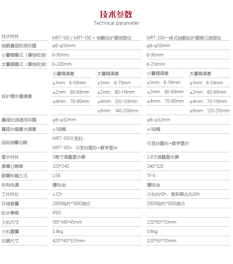 產(chǎn)品概述美泰MRT-200一體式鋼筋保護(hù)層測(cè)定儀,基于電磁感應(yīng)原理,采用一體化便攜式設(shè)計(jì),可快速無(wú)損檢測(cè)鋼筋位置、布筋情況,根據(jù)已知直徑檢測(cè)混凝土保護(hù)層厚度及鋼筋直徑。其測(cè)量速度快、測(cè)量精度高、性能穩(wěn)定可靠,適用于對(duì)現(xiàn)有鋼筋混凝土工程及新建鋼筋混凝土結(jié)構(gòu)施工質(zhì)量的檢測(cè),也可對(duì)非磁性和非導(dǎo)電介質(zhì)中的磁性體及導(dǎo)電體的位置進(jìn)行檢測(cè),如墻體內(nèi)的電纜、水暖管道等。是一款專(zhuān)業(yè)多功能智能型精密無(wú)損檢測(cè)儀器。