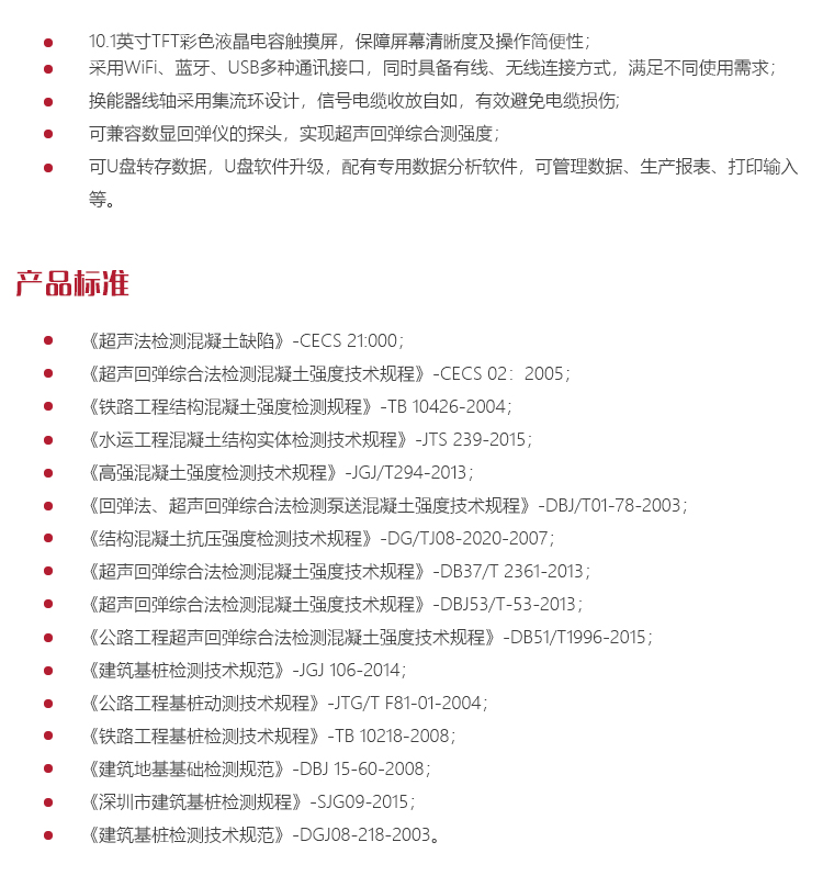 儀器特點(diǎn)l 廣泛應(yīng)用于混凝土、巖石、陶瓷、石墨、塑料等非金屬材料和構(gòu)件的無(wú)損檢測(cè);