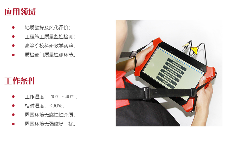功能用途l 廣泛應(yīng)用于混凝土、巖石、陶瓷、石墨、塑料等非金屬材料和構(gòu)件的無(wú)損檢測(cè);