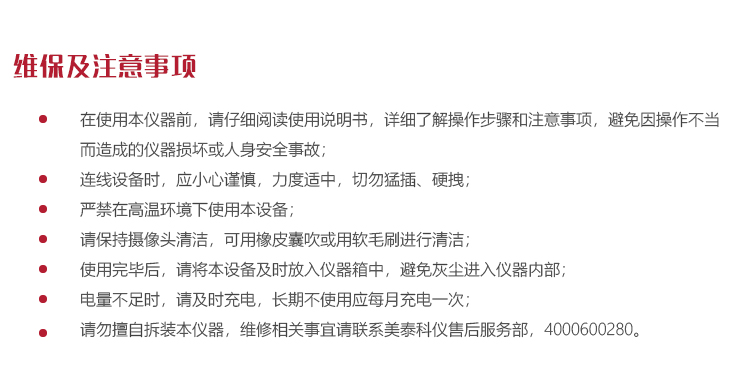 請勿擅自拆裝本儀器,維修相關事宜請聯(lián)系美泰科儀售后服務部,4000600280。