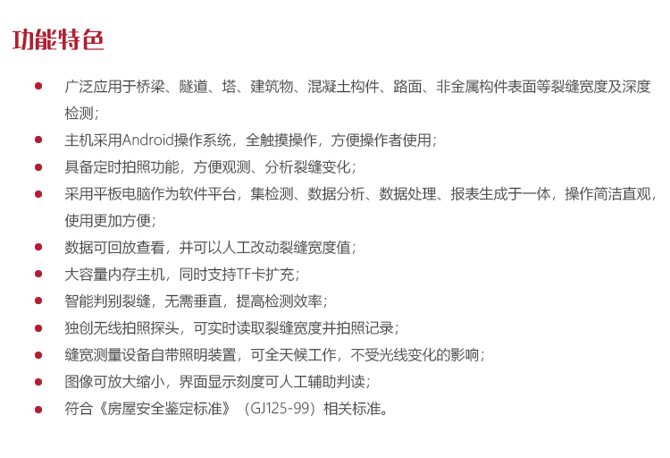 l 獨創(chuàng)無線拍照探頭,可實時讀取裂縫寬度并拍照記錄;